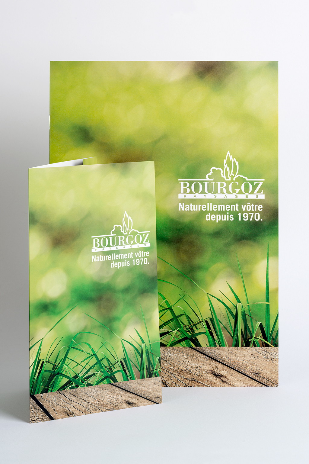 Création et réalisation de brochures et plaquettes de présentation pour Bourgoz Paysages Sàrl.