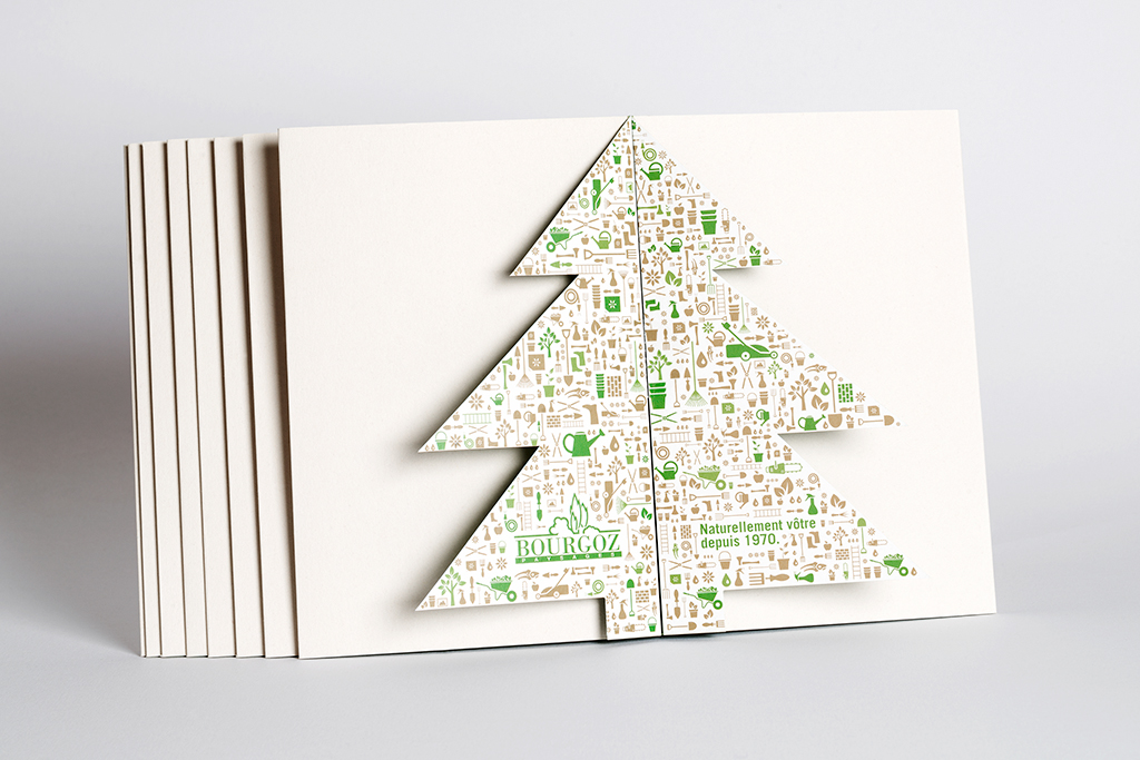 Création et réalisation de cartes de voeux pour Bourgoz Paysages Sàrl.
