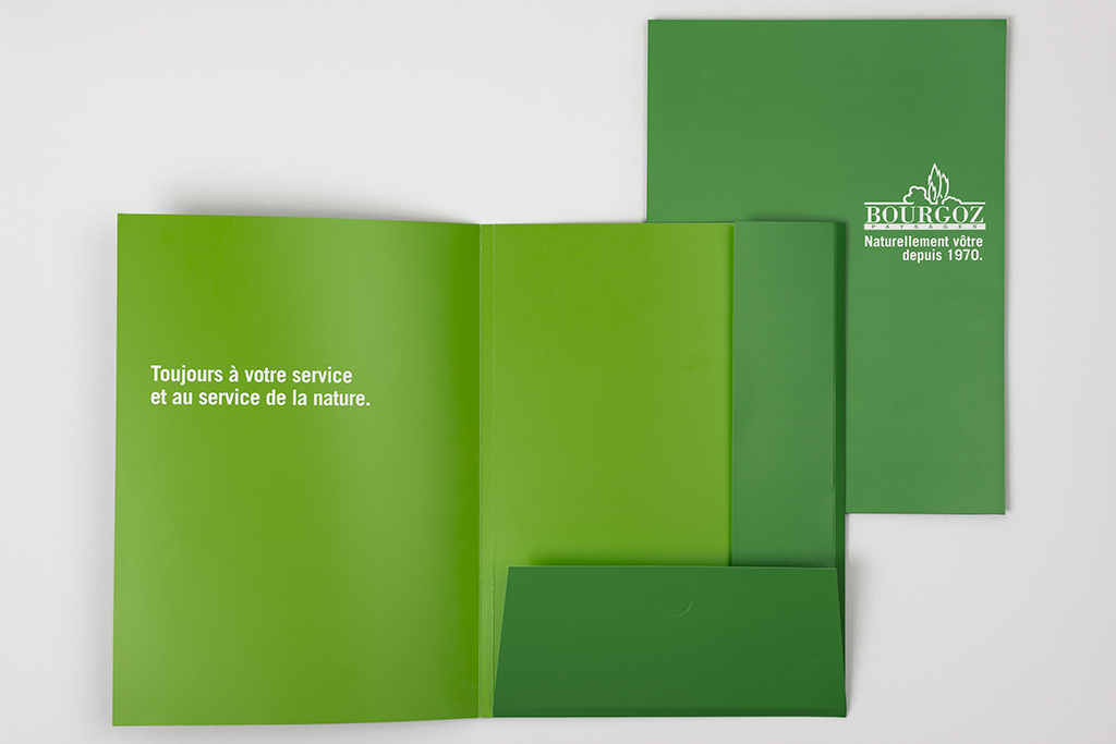 Création et réalisation de poches de présentation pour Bourgoz Paysages Sàrl.